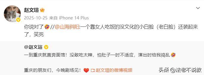 有时遇上网友恶评他是靠女人吃饭的小白脸,赵文瑄也会幽默回应“你说对了”。