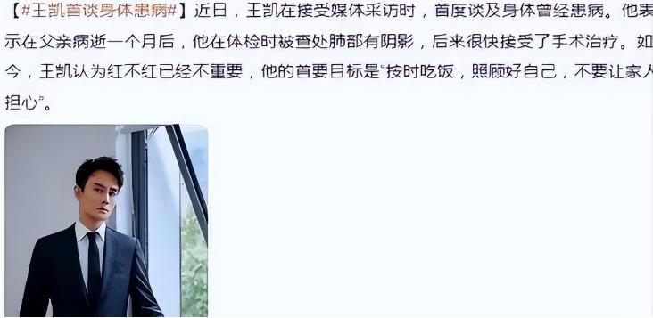 就在王凯事业如日中天,所有人都看好他的时候,一场突如其来的噩耗,彻底改变了他的人生态度。