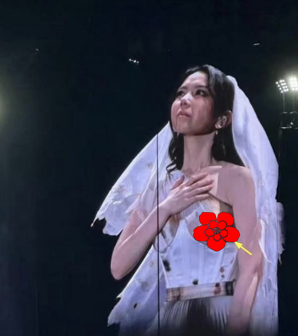 甚至翻出2023年广州演唱会“透视装”事件:当时她亲自设计的婚纱礼服因胸口斑驳设计被嘲“像肿瘤”,过长裙摆还导致舞台摔倒。