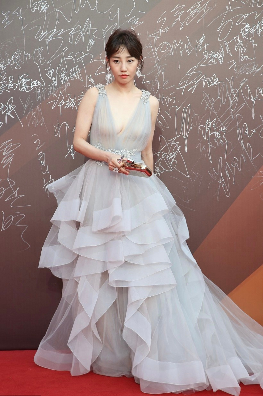 最让人印象深刻的,就是2016年华表奖的红毯造型。