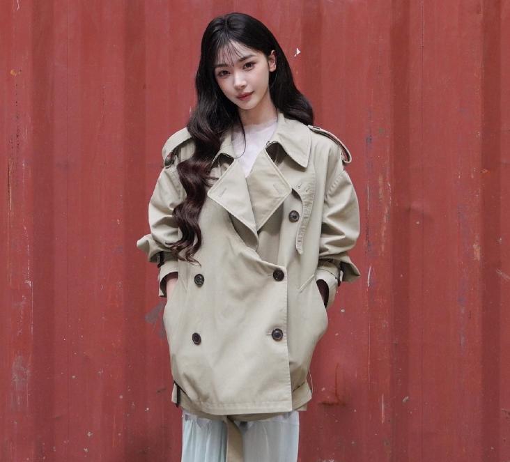 她选用卡其色风衣搭配白色纱裙,温柔中带着飒气。